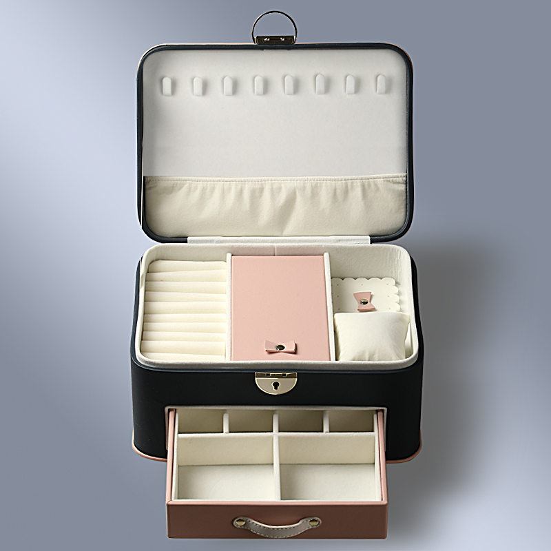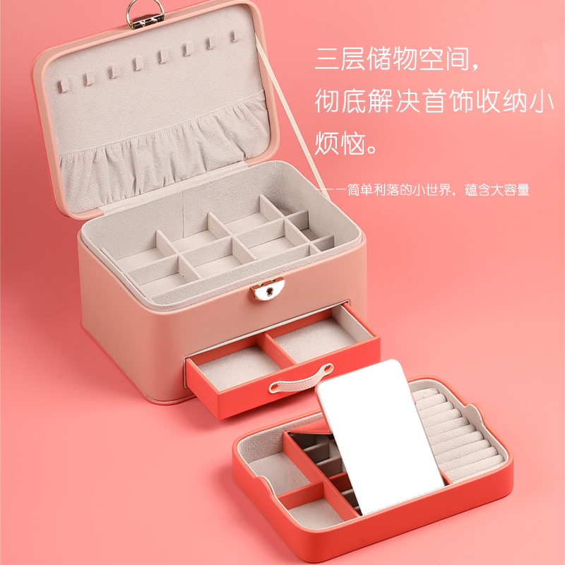 Sofis pony multi-layer jewelry box jewelry storage box ear ring box jewelry storage box with lock mirror Korea