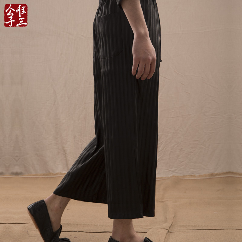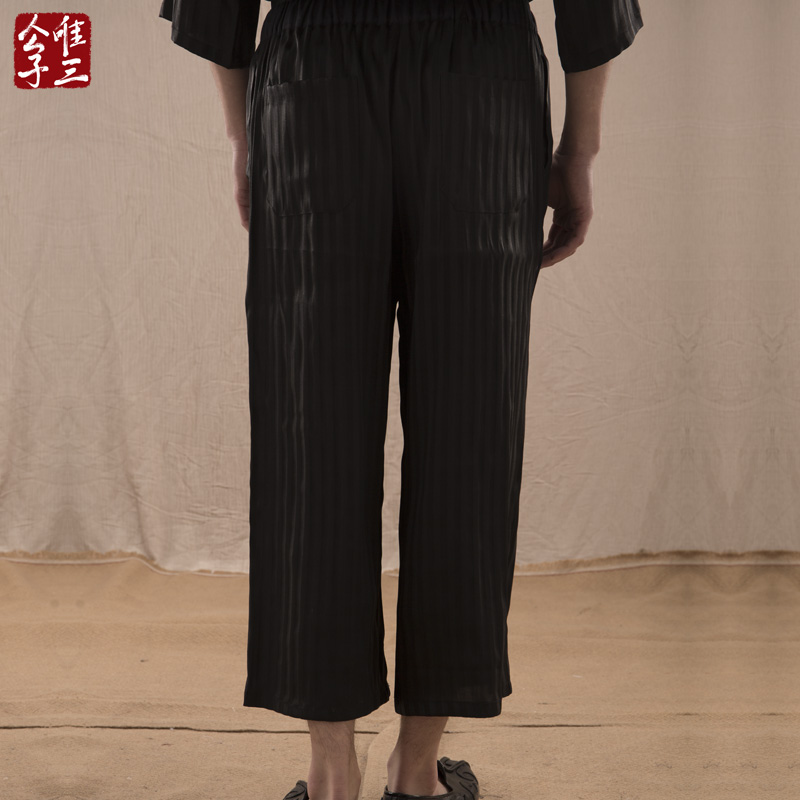 Only three silk Huixiang cloud gauze pants men's Zen monk tea clothes Tang suit Hanfu harem pants silk wide-leg pants men's loose