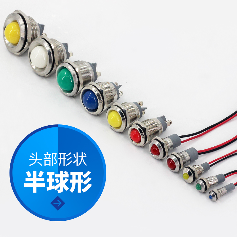 LED metal indicator light 6 8 10 12 16 19 22 25 28 30mm waterproof signal light 220V with line