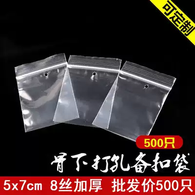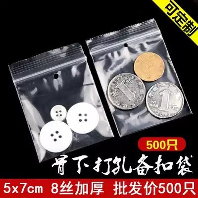 5*7cm8 silk buckle bag, self-sealing bag, small perforated bag, transparent custom tag bag, clothing button bag, 500 pcs