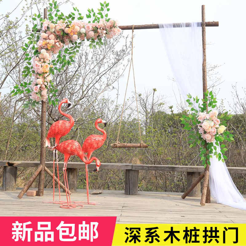 Wedding props wood door lawn wedding arch happiness door wood stake flower door tree stump forest wedding props - Taobao