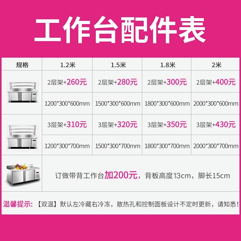 Letron air-cooled frost-free work bench Ice cabinet Commercial fridge freezer Stainless Steel Refrigeration Hidden Cabinet Kitchen Operating Table-Taobao