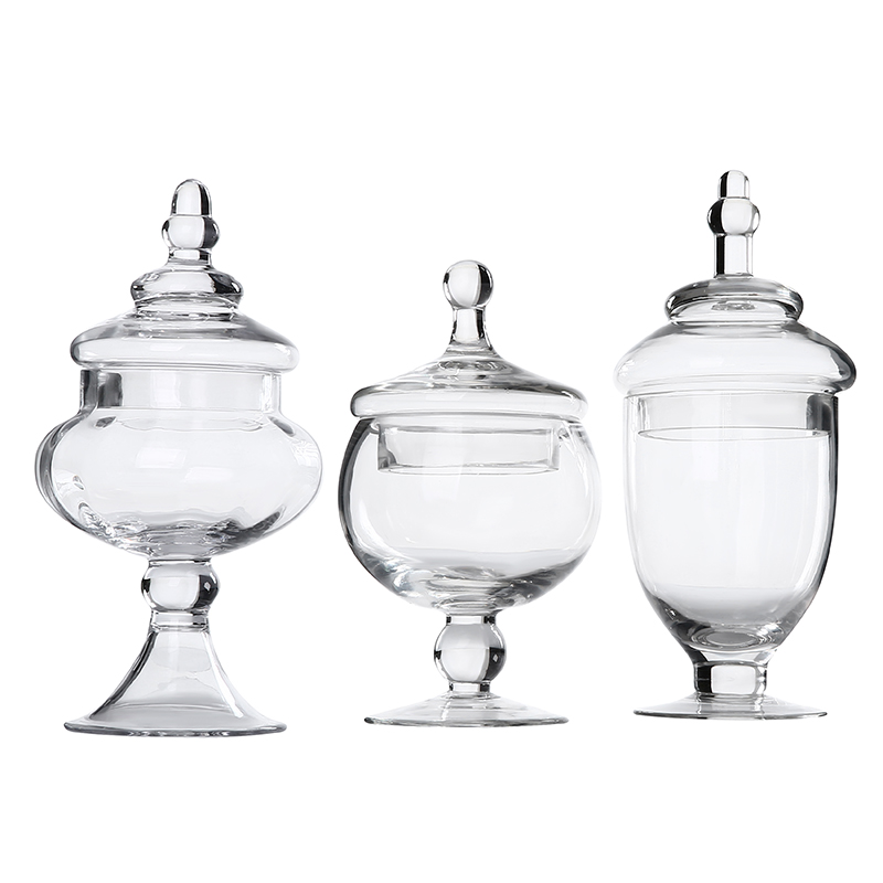 Glass sugar jar European home accessories tea jar three-piece storage jar transparent candy jar utensils birthday ornaments