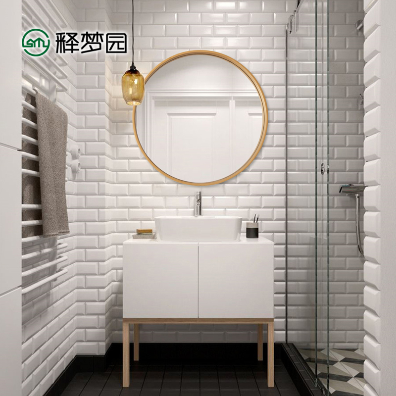Nordic round brass gold powder room bathroom mirror Simple dressing table decorative mirror Wall-mounted entrance mirror 2040