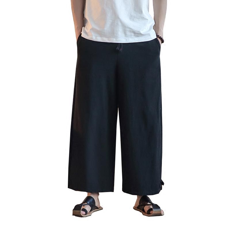 Summer national tide flared pants fat plus size Chinese style retro nine-point pants men's straight pants wide legs wide pants