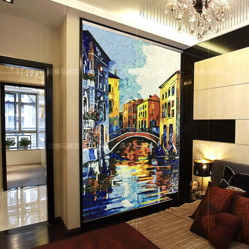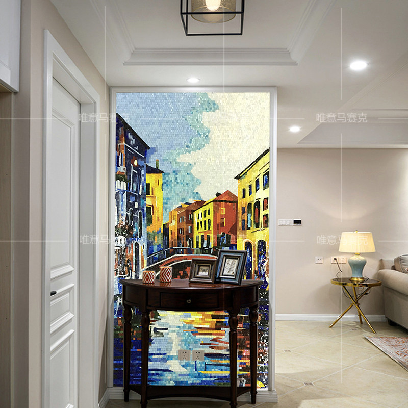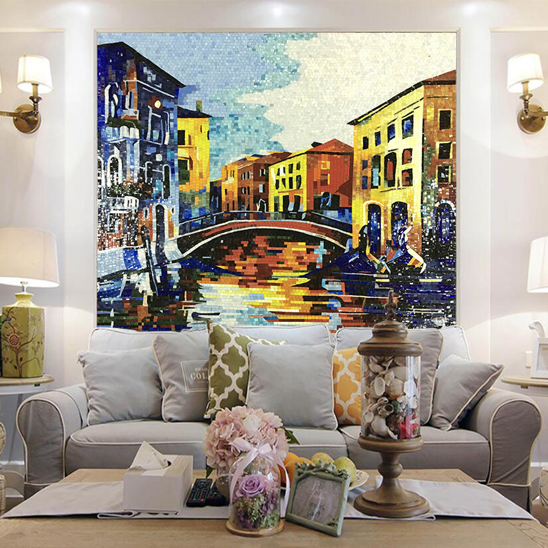 Eurostyle Town Mosaic Background Wall Living Room TV Genguan Glass Trim Cut Jigsaw Puzzle Art Parquet Tiles