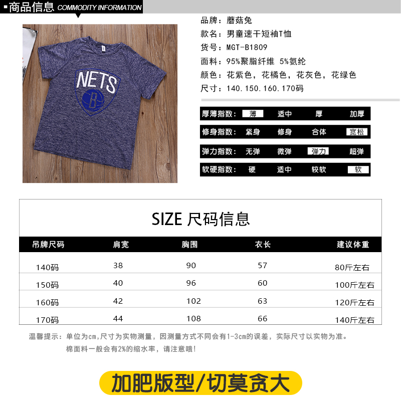 Male big boy short-sleeved t-shirt 12-15 years old summer trend fat boy quick-drying half-sleeve loose plus fertilizer to increase middle and big children