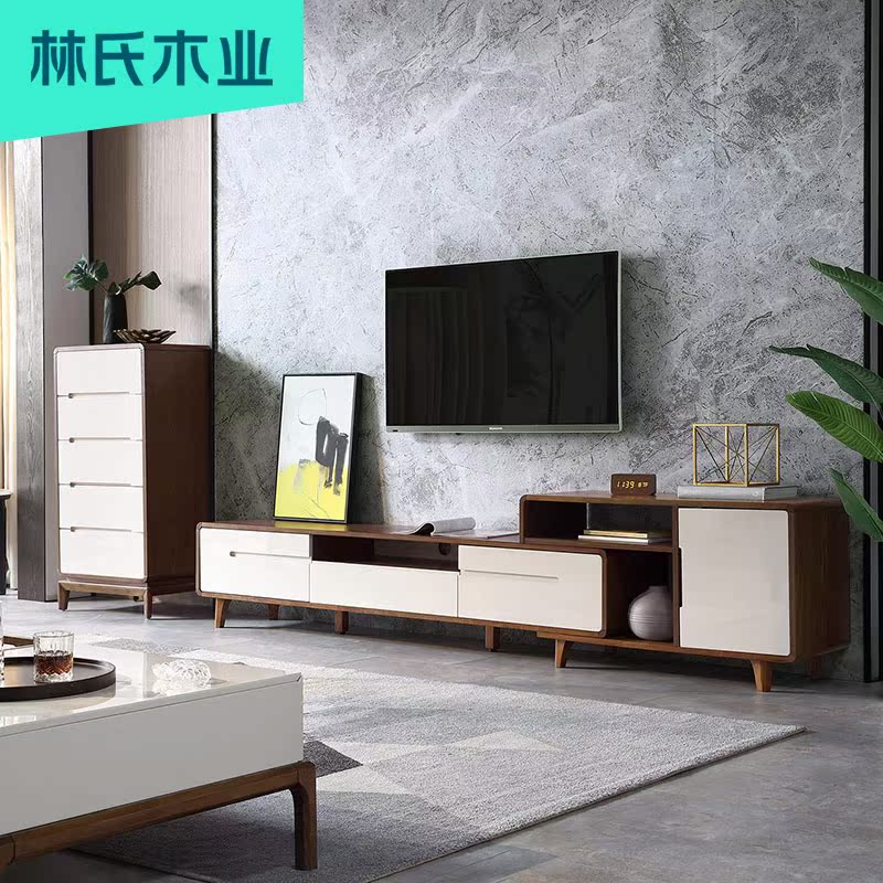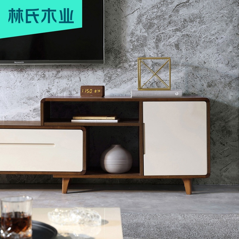 Lin's wood industry Nordic solid wood feet TV cabinet Small narrow bedroom living room dwarf cabinet Provincial space drawer storage cabinet