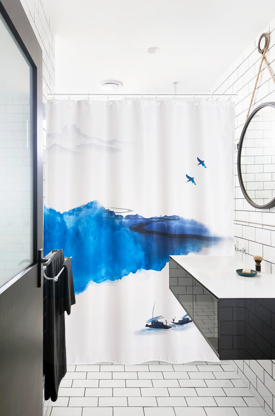 Taoiseum natural bath curtain (delivery hook) Landscape Eroy Bath Curtain (delivery hook) Impressionwind bath curtain (delivery hook) Zhanblue mountain range bath curtain (delivery hook)