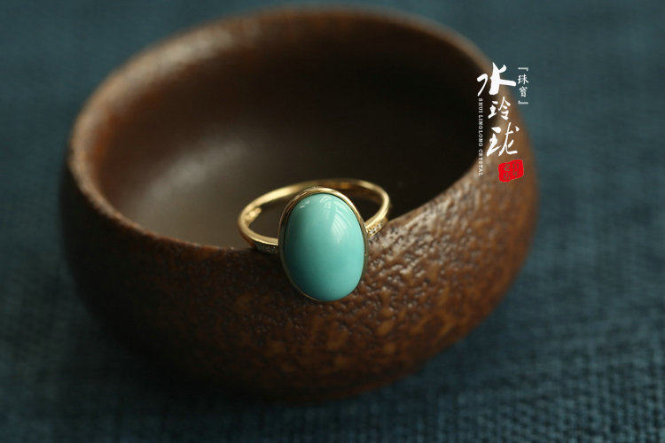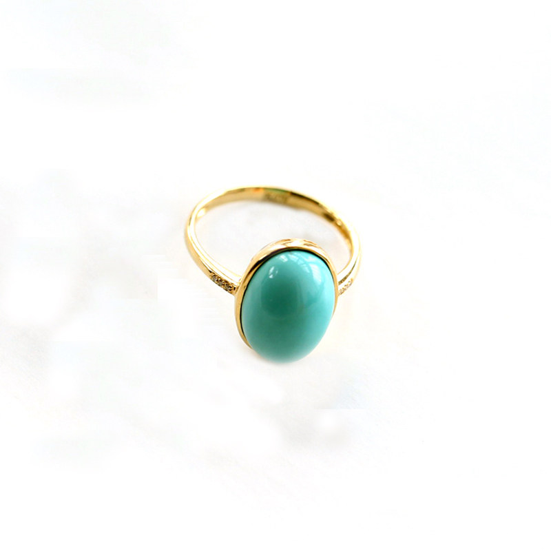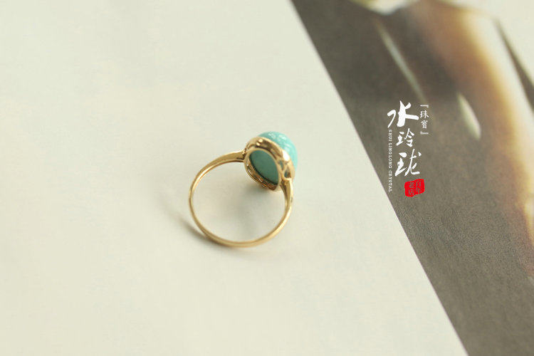 Natural raw mineral jewel green pine stone ring female light glossy high porcelain 18K gold mosaic minimalist design egg surface ring-Taobao