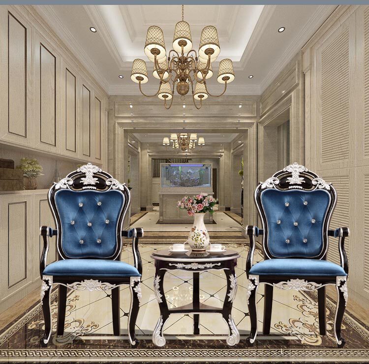 European-style dining chairs sample house display center beauty salon photo studio reception chair negotiation table and chair combination three-piece solid wood furniture spot