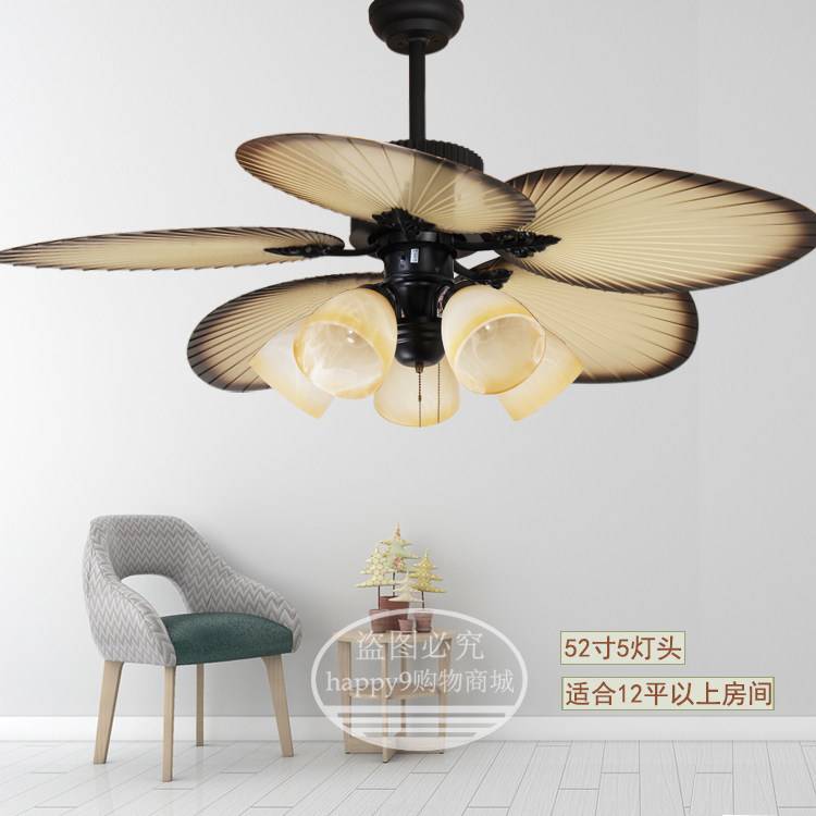 New Chinese Day Style Ceiling Fan Lamp Home Dining Room Bedroom Living Room Fan Light Modern Brief Nordic Retro Frequency Conversion Electric