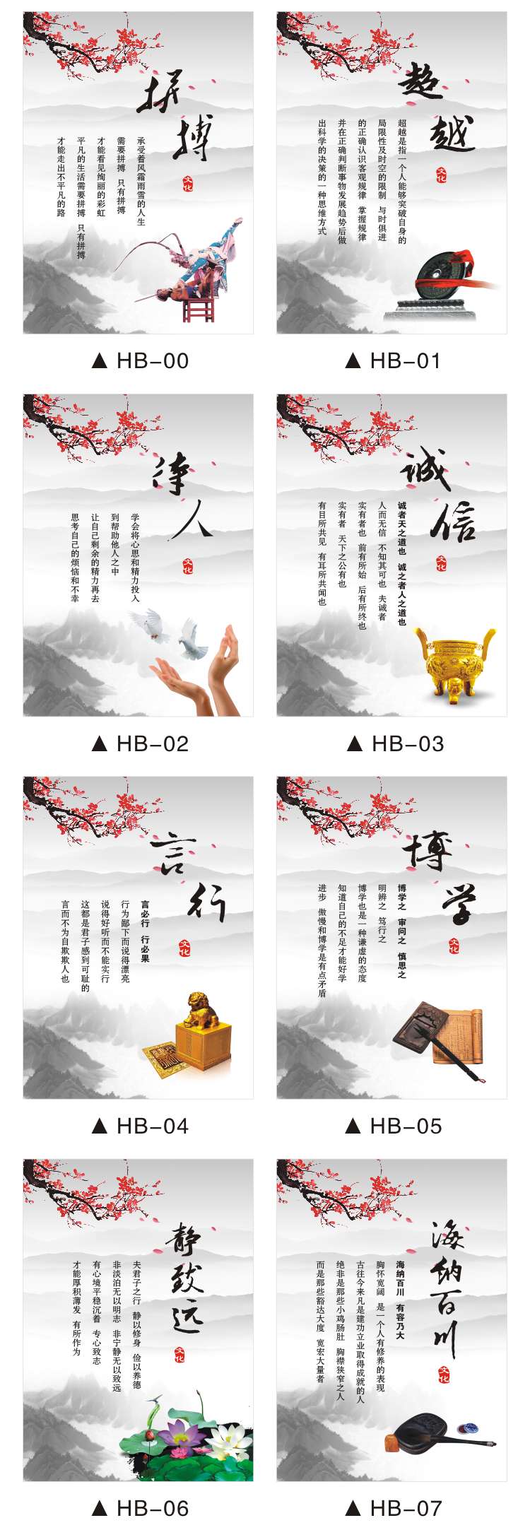 HB-00 Hard Work HB-01 Beyond HB-02 Treat Others HB-03 Integrity HB-04 Words and deeds HB-05 Erudition HB-06