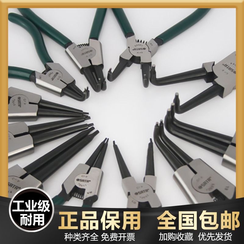 Seda Snap Spring Pliers Internal Card External Card Dual-use 7 Inch Straight Mouth Curved Opening Hole Card Pincer For Shaft Use Card Yellow Pliers