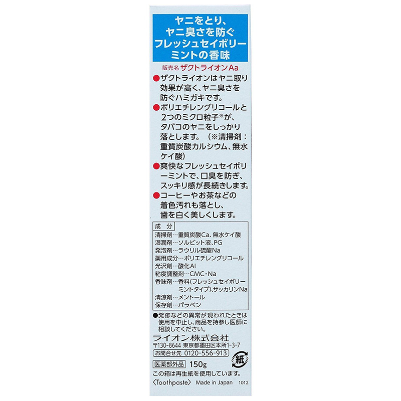 Japan's original imported LION lion ZACT to remove smoke stains toothpaste special tea stains whitening to remove yellow teeth and bad breath