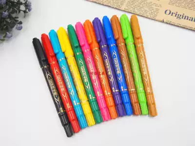 12 color small double head color oil marker Green purple yellow marker pen small double head color marker pen