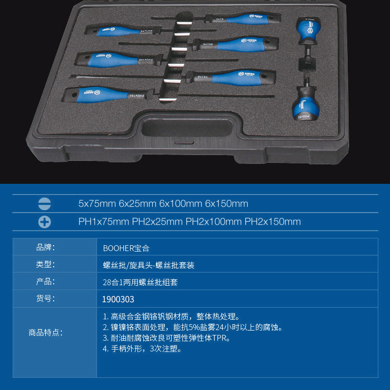 Treasure-fit tool 8 pieces of bicolor handle screw screwdriver set sleeve screwdriver head screw opener suit 1900303