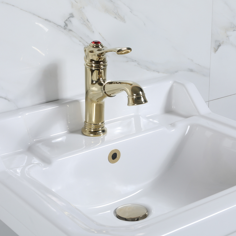 Butterfly bathroom pull-out surface basin tap inlaid red zircon gold tap to exit British style