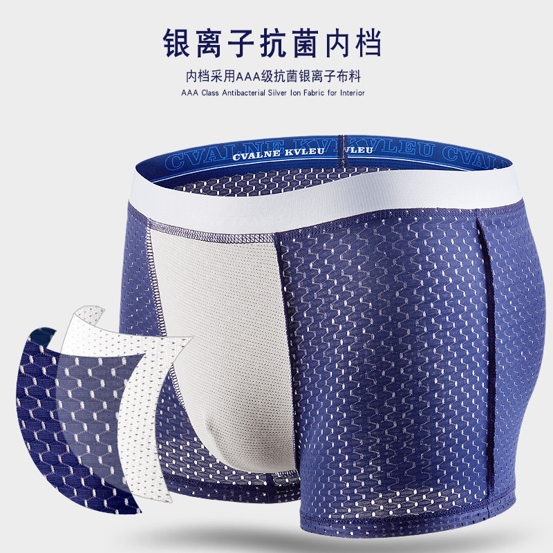 Fugui Bird Men's Underwear Men's Ice Silk Screen Holes Breathable Four-corner Pants Head Summer Mesh Thin guys Four corner pants underpants