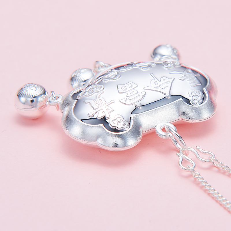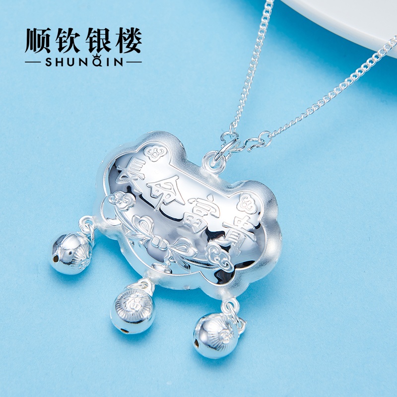 Shunqin Silver Tower 999 foot silver new long life rich lock lock Sterling silver pendant lock Child full moon birthday gift