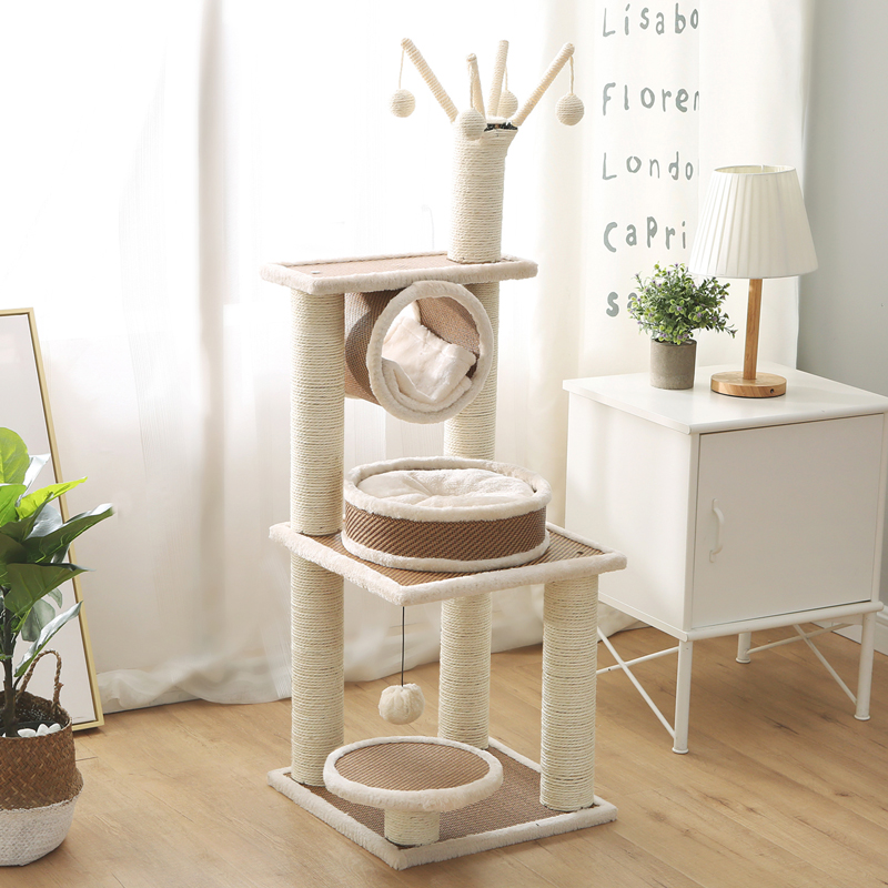 Cat Climbing Frame Sisal Small Cat Grab Cat Tree Cat Nest Integrated Export Cat Catching Board Solid Wood Four Seasons Rattan Seat Cat Grab