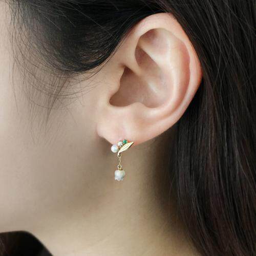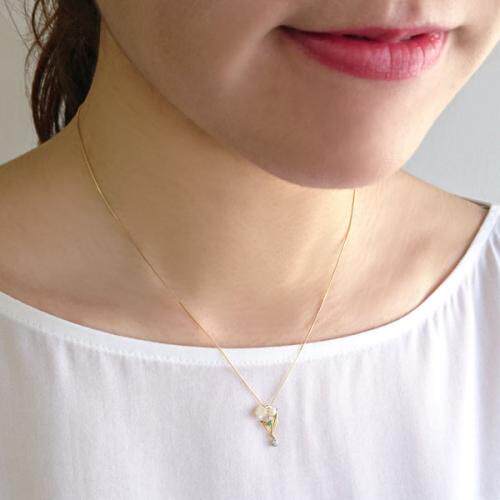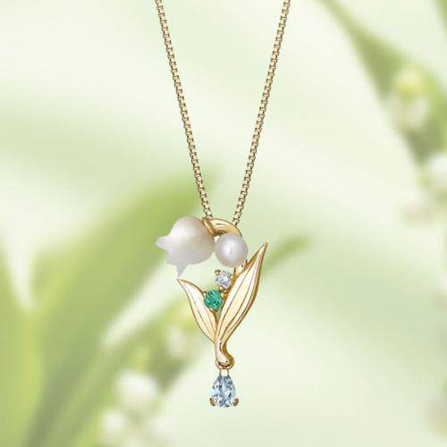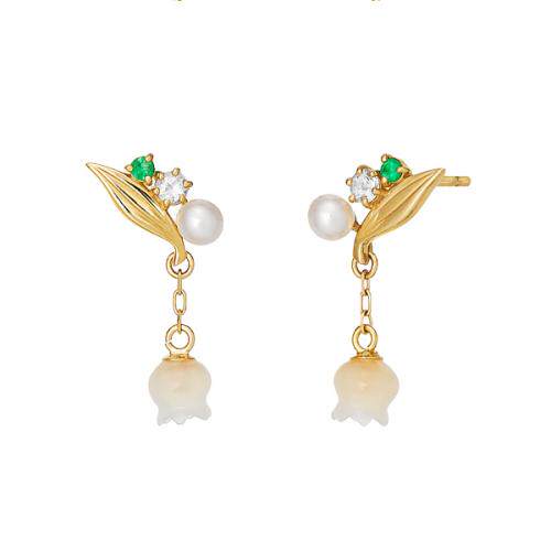 Japan direct mail take up 10k May birth flower pure lily of the valley ear needle necklace
