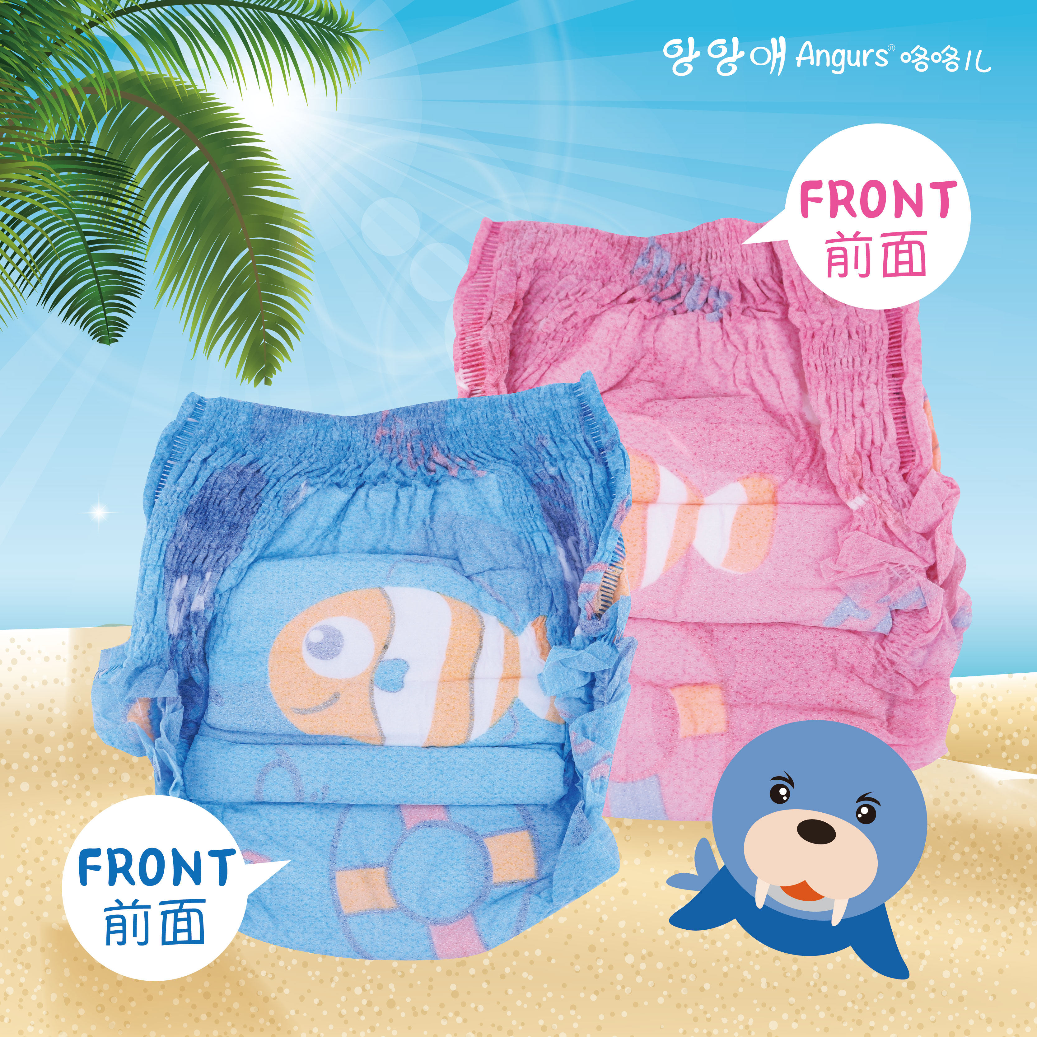 Angurs giggle baby Korean baby swimming ladypants baby swimming cheerpants L XL men and women 1 piece of clothing