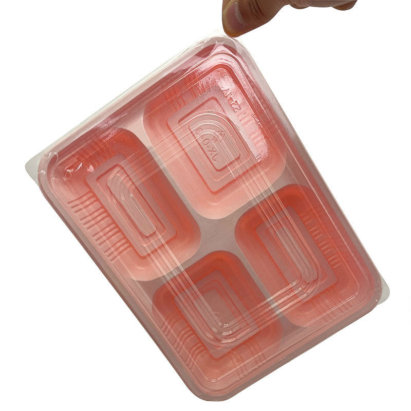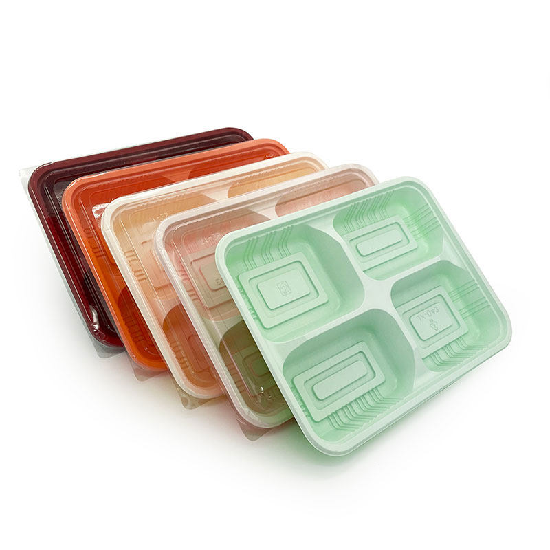 Disposable four-grid meal kit boxed with rectangular four-g small vegetable box for takeaway and environmentally friendly two-style fast food box plastic