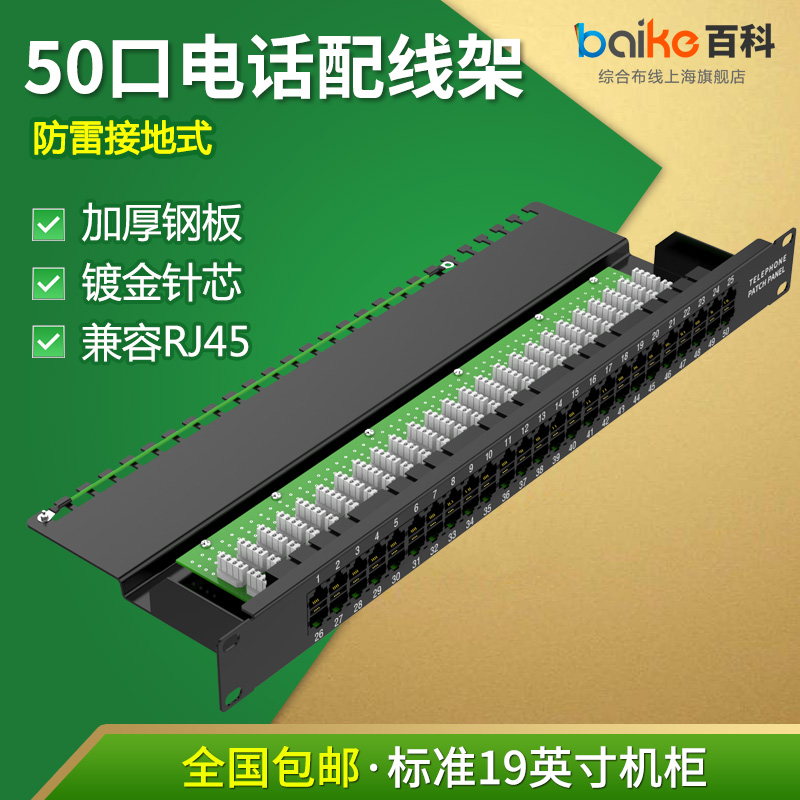 25-port 50-port telephone distribution frame 100 pairs of RJ11 voice wire frame 2-core 4-core rack-type thickening lightning protection type