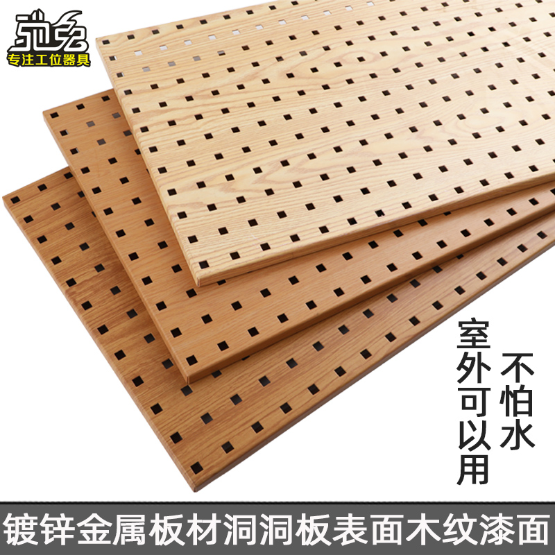 Square hole hole board Metal wood grain color wall hole board Hardware tools display shelf Kitchen tools hanging board hook