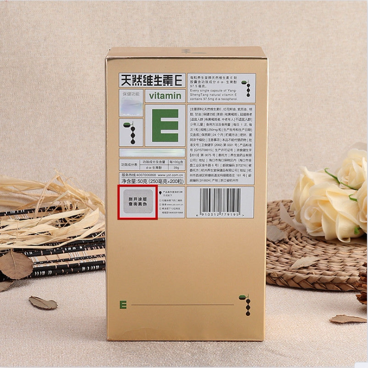 Yangshengtang brand natural vitamin E soft capsules 250mg capsules 200 capsules ve vitamin E 200 capsules VE new