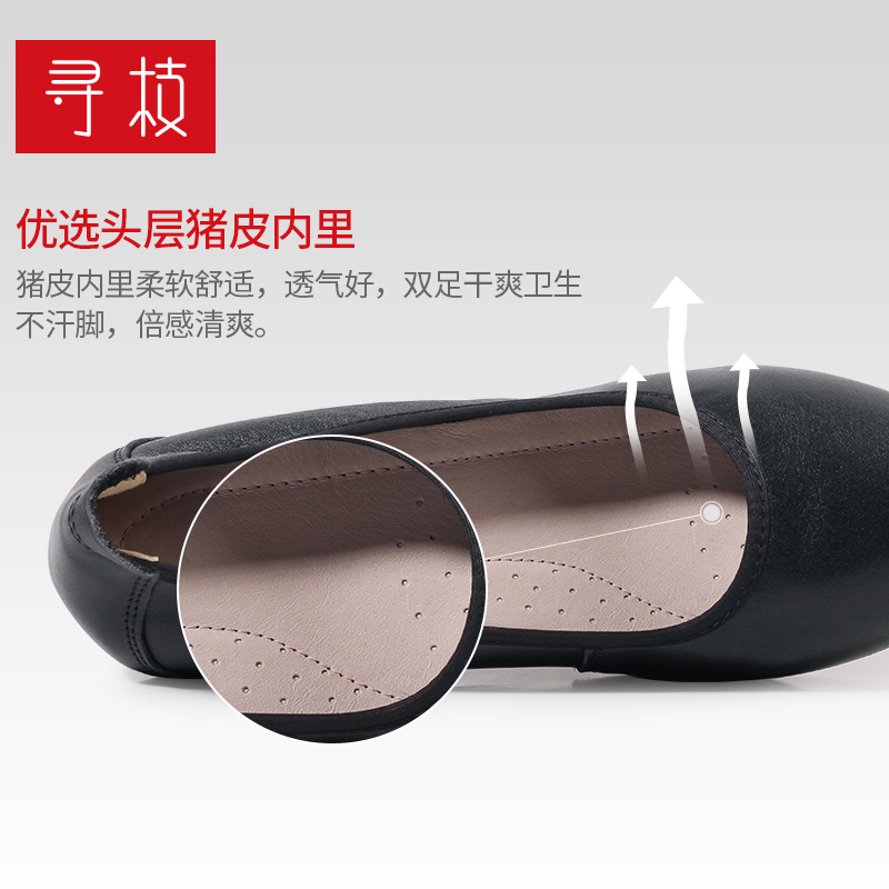 Leather work shoes women's black medium heel comfortable professional dress single leather shoes thick heel soft bottom non-slip stewardess shoes pointed toe
