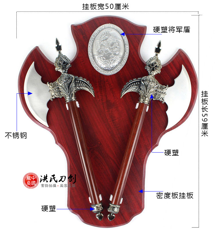Wall-mounted double axe film and television animation weapons European wall-mounted handicrafts town house praying decoration axe not open blade