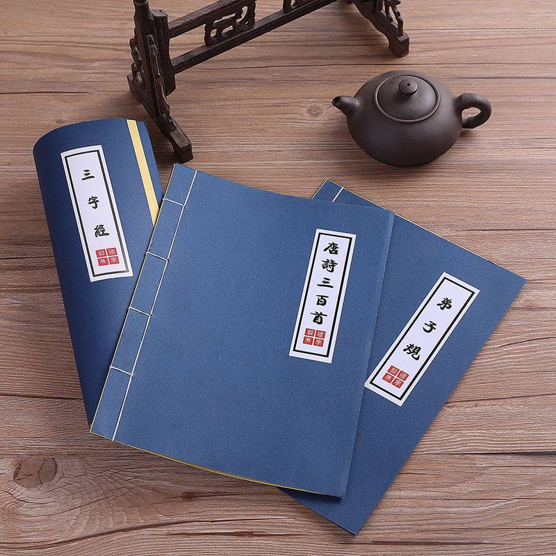 Three words via ancient book photography photo-prop disciples Imitation Ancient Fake Book Tang Poetry Retro Line Clothing Book Stage Performance