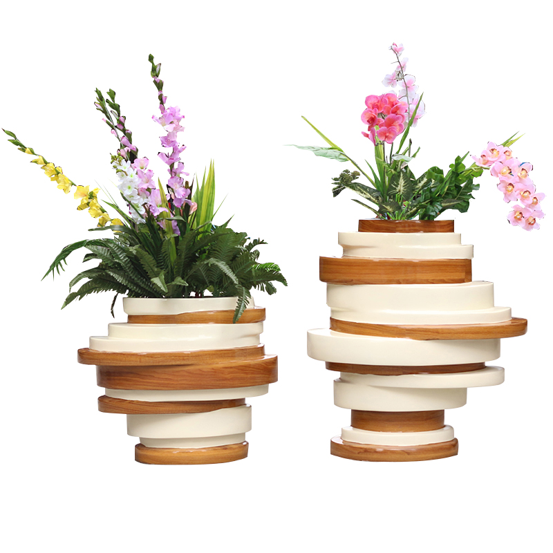Decorative Landscape Large Flower Pot Flower Cylinder Mall Beauty Chen Floor Large Vase Stack Type Flower Bowl Outdoor Garden Decorative Flower-Taobao