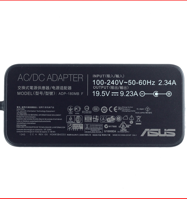 ASUS SUSTech Flight Fortress FX60V ZX60V laptop power supply adapter 19 5V 9 23A 180W