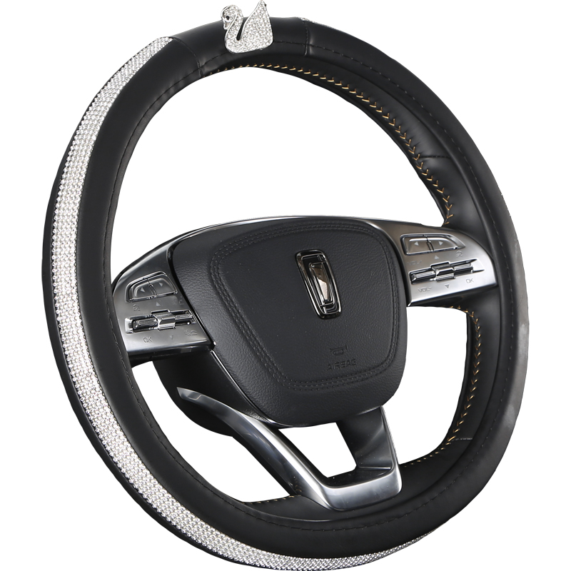 Insert Drilling Swan All Season Car Steering Wheel Cover Korea Cute Non-slip Car On-board LADY WATER DRILLING CREATIVITY