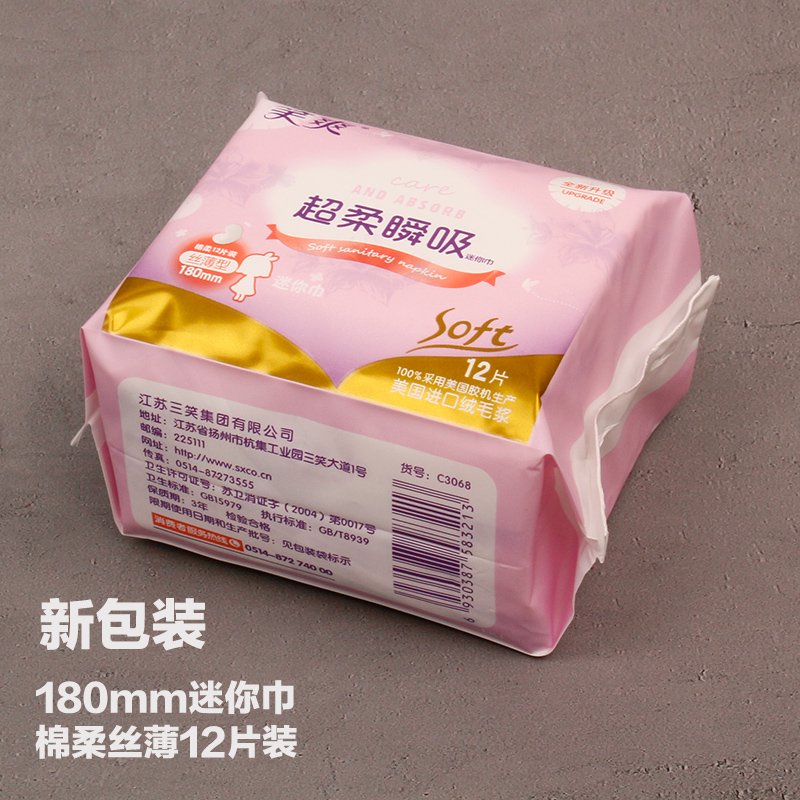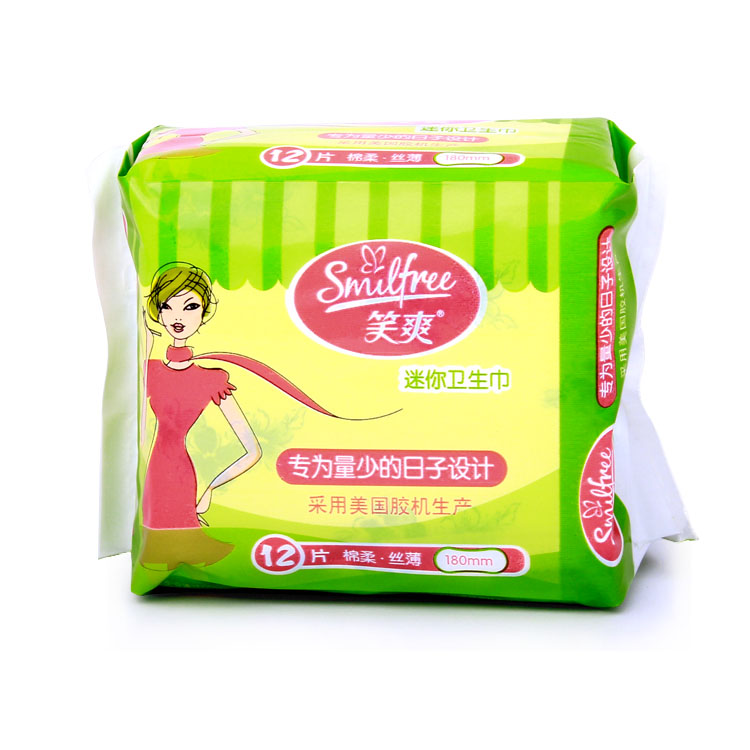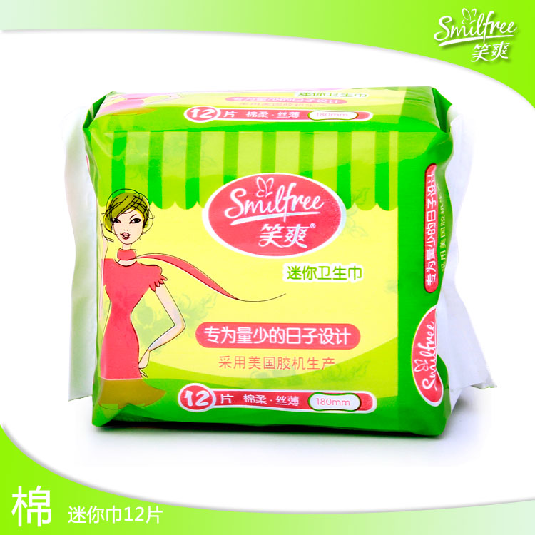 Smiling sanitary cotton mini-towels 12 pieces fit 180mm cotton soft ultra-thin non-daily pad night with a carry-on bag close-fitting