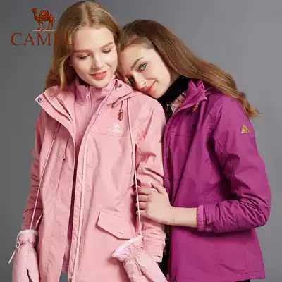 Camel outdoor assault clothing men and women Tide brand plus velvet thickened three-in-one detachable mountaineering clothing waterproof and breathable jacket