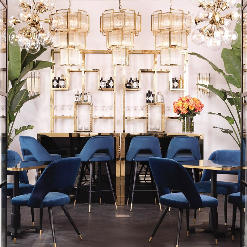 Modern Personality American Light Luxury Home Golden High Foot Hotel Bar Chair Metal KTV Soft Backrest Bar Chair