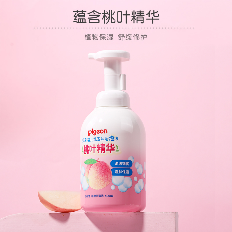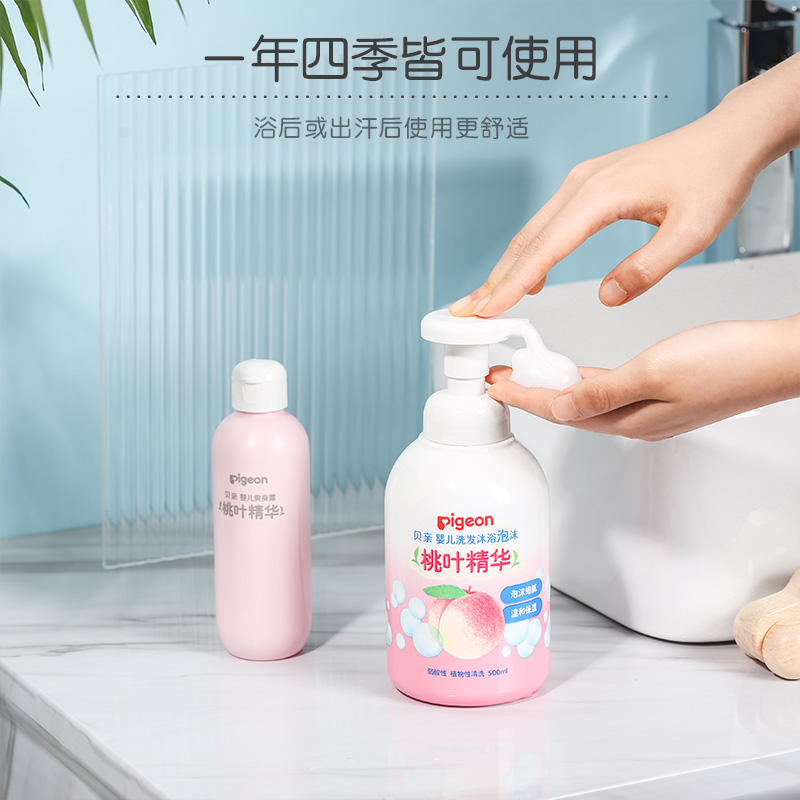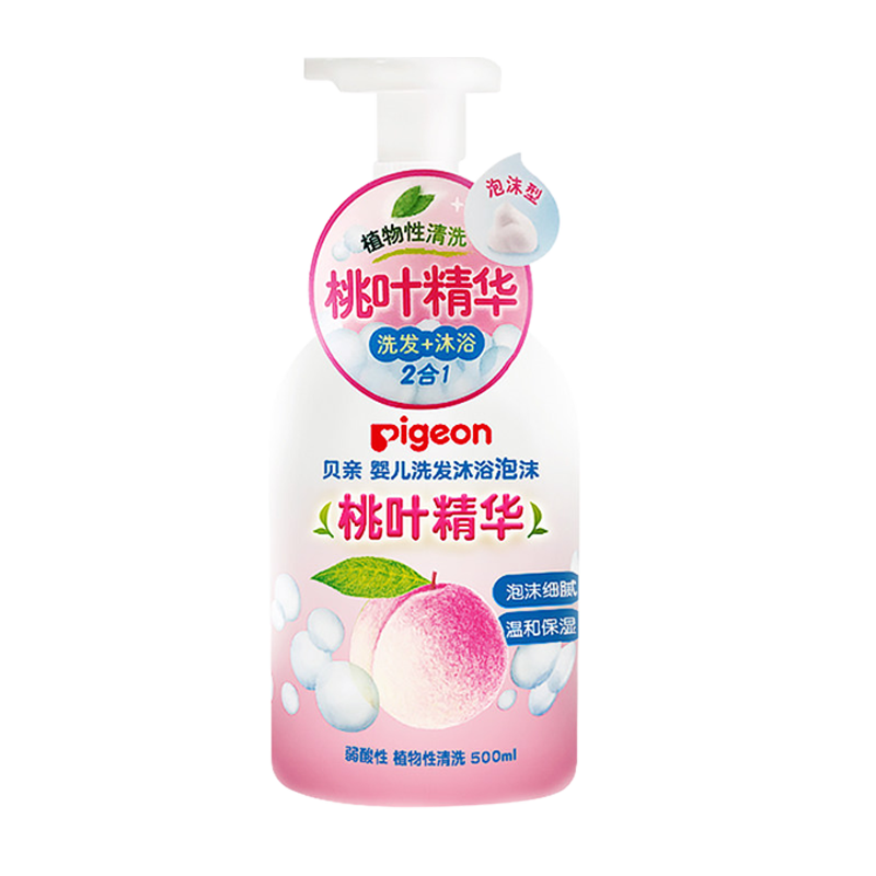 Pigeon Bei Pro Baby Baby Kids Peach Leaf Extract Shampoo Shower Gel Foam 2 in 500ml