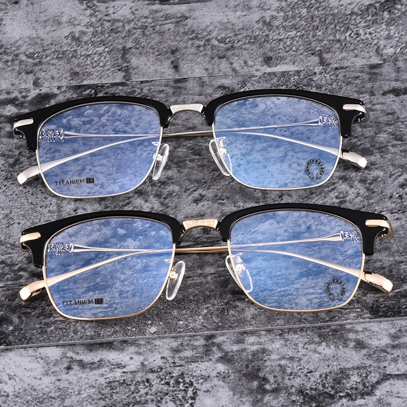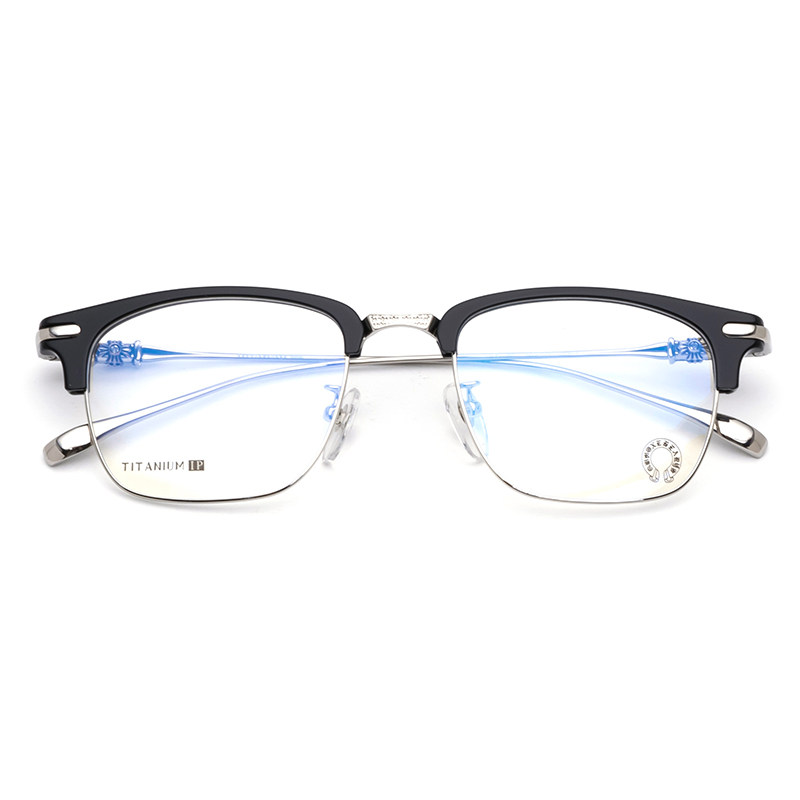 Xue Zhiqian's same style glasses frame men's half-frame pure titanium ultra-light square frame full eyebrow line retro with myopia Crow heart frame