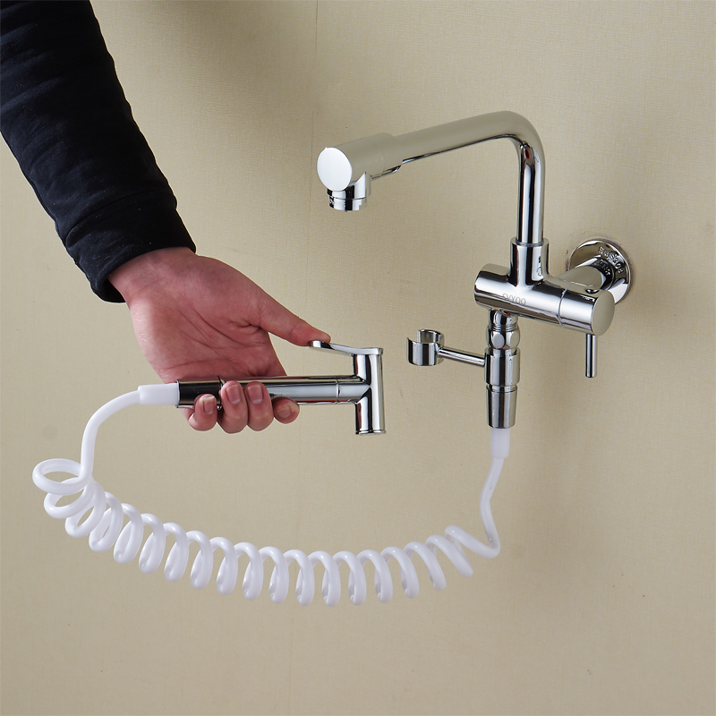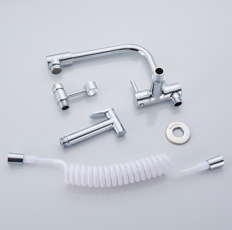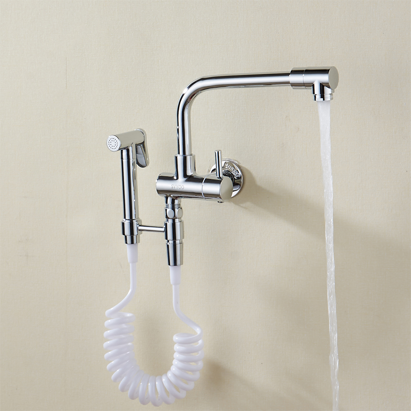 Extended washing machine faucet single-cooled double-use mop pool faucet into two out three water mouth washing gun