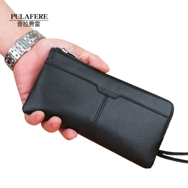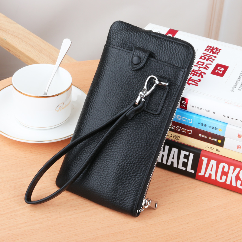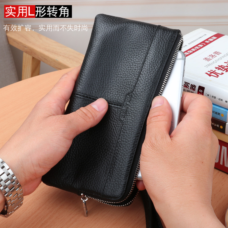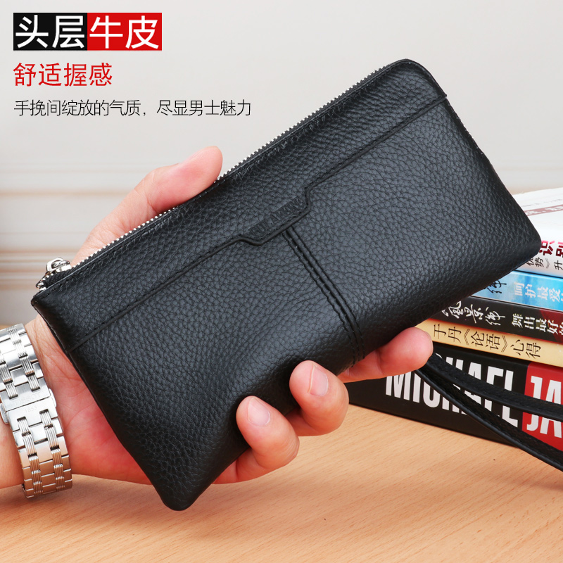 Men Wallet Long Version Pull Chain Real Cow Leather Small Handbag Male Soft Leather Mobile Phone Bag Summer Multifunction Tide Men's Hand Bag