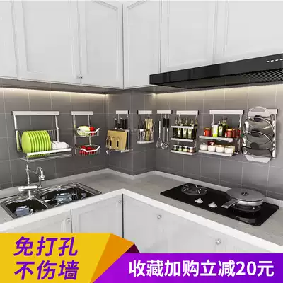 Punch-free kitchen rack corner frame wall-mounted stainless steel wall storage layer rack dish holder knife holder pendant
