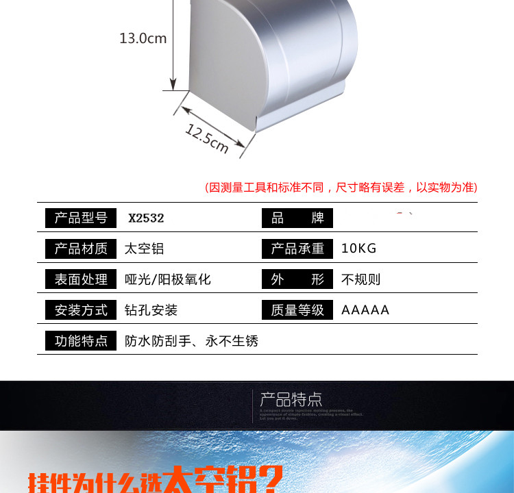 Bathroom waterproof tissue holder pendant roll toilet paper box toilet paper box space aluminum toilet paper fully enclosed tissue box X2532