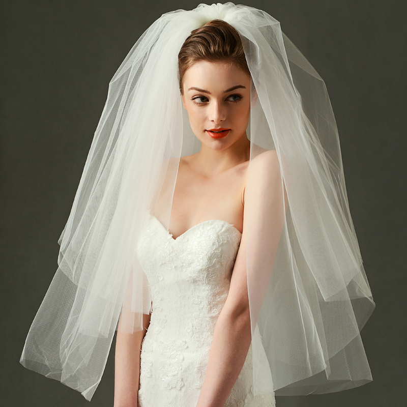Champagne color puffy French veil hard double super Fairy photo props Forest bride main wedding headdress short section