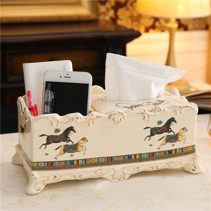 Eurostyle Luxury Tissue Box Fashion Tea Table Remote Control Mobile Phone Multifunction Containing Box Ceramic Inglum Toilet Paper Box