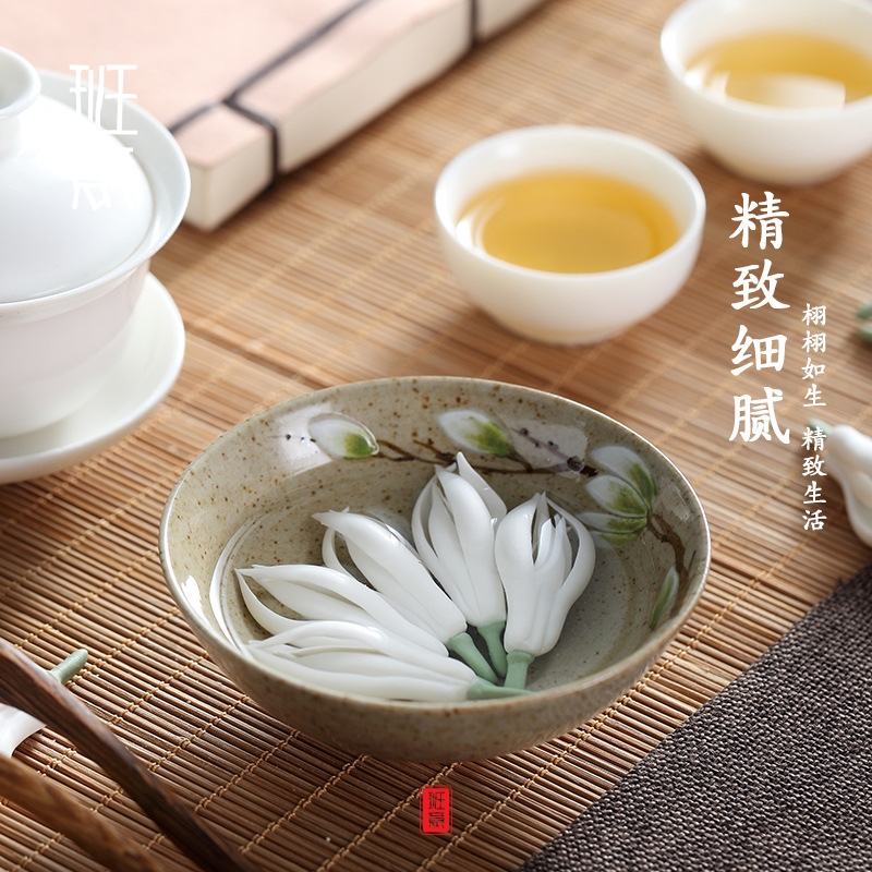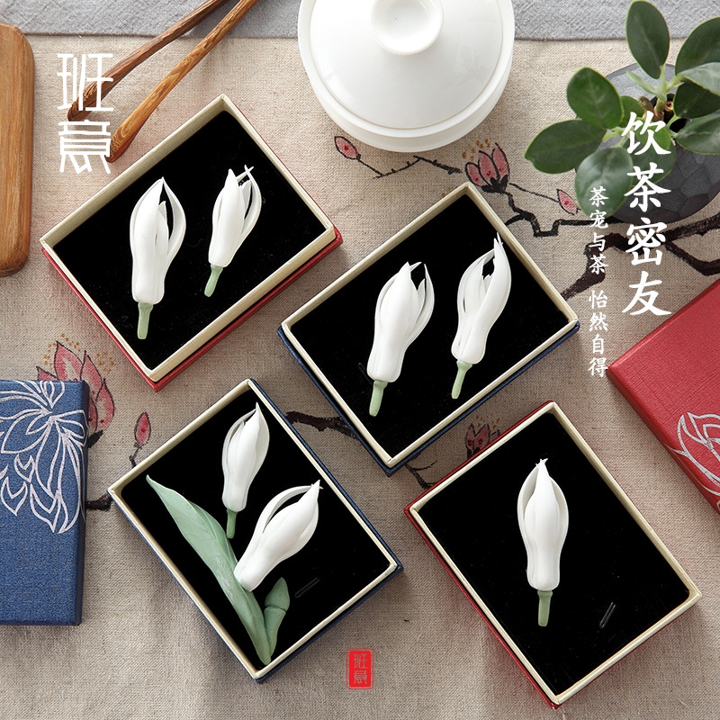 Creative Tea Pet Magnolia Flower Tea Mat Ornament Decorative Pen Holder Tea Play Boutique Hand-kneaded Ceramic Flower Gift Tea Holder