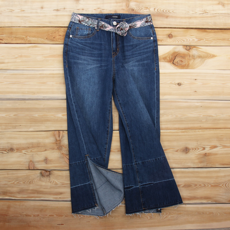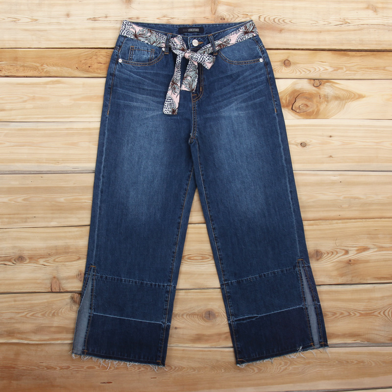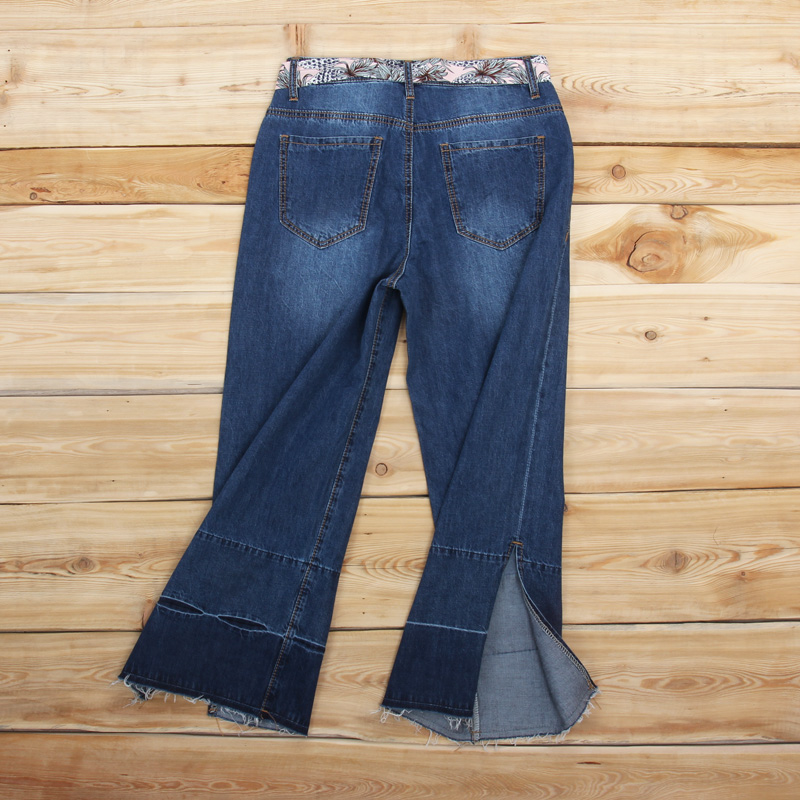 Ultra Worth Foreign Trade Women's Straight Barrel Jeans Broadlegged Pants Feet Open Fork Casual Pants Summer Thin women's pants Flowers Belts